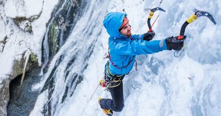 Ice climbing is a unique style for a number of reasons. Firstly as the name would suggest, it takes place on ice and therefore is classically done in winter. The other element is the equipment; ice axes are used to dig into the ice, and spikey attachments for your boots called crampons are used to ‘provide grip’.
