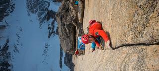 We weren’t the first team to reach the summit. A Swiss team claimed that prize in 2012. We were the second but the first to climb via the main, most difficult face of the wall. For me the summit was a little anticlimactic. We’d overcome the major difficulties of the climb a couple of hundred meters below the top, a couple of days earlier. At that point I knew it was in the bag and kind of experienced the summit emotions then, touching the top was almost a formality. Of course there is a great sense of accomplishment at having achieved your goal, not to mention the special feeling of being one of only a handful of humans ever to set foot on such a spectacular corner of Earth. However it’s not like winning a race, there’s nobody there cheering for you and the reality is you’re still a long way from home and safety. It’s a pretty complex logistical process getting down such a huge face with so much stuff and no sooner had we topped out than my mind was completely occupied with the details of the descent. I think the other guys had a more celebratory feeling since none of them had ever done anything like that before.