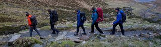Appropriate footwear – walking boots or walking shoes – are a must. Insulating layers like fleeces are important to keep you warm. It is better to wear several relatively thin layers than a single thick one so you can adjust your temperature. Wet is the enemy of warmth, so decent waterproofs are vital for safety keeping your other layers dry. Cotton and jeans aren't suitable choices for hillwalking and get particularly cold when wet – it is best to avoid both.
